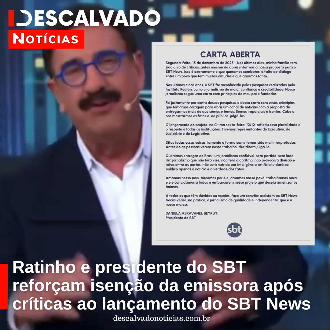 Ratinho e presidente do SBT reforçam isenção da emissora após críticas ao lançamento do SBT News