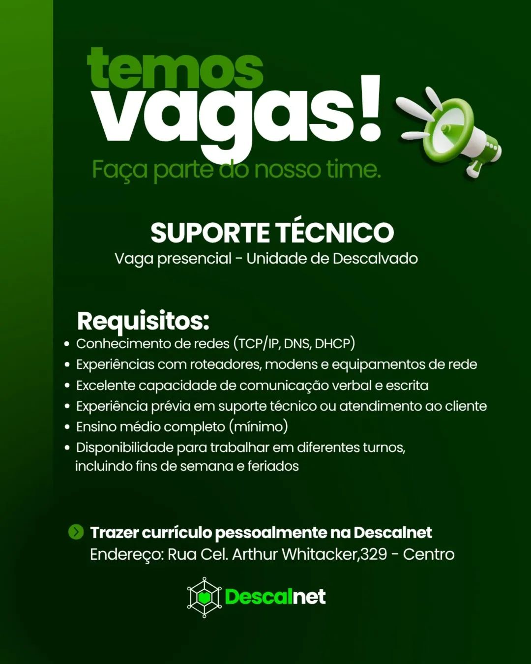 A Descalnet, referência em soluções de internet e conectividade na região, está com oportunidade...
