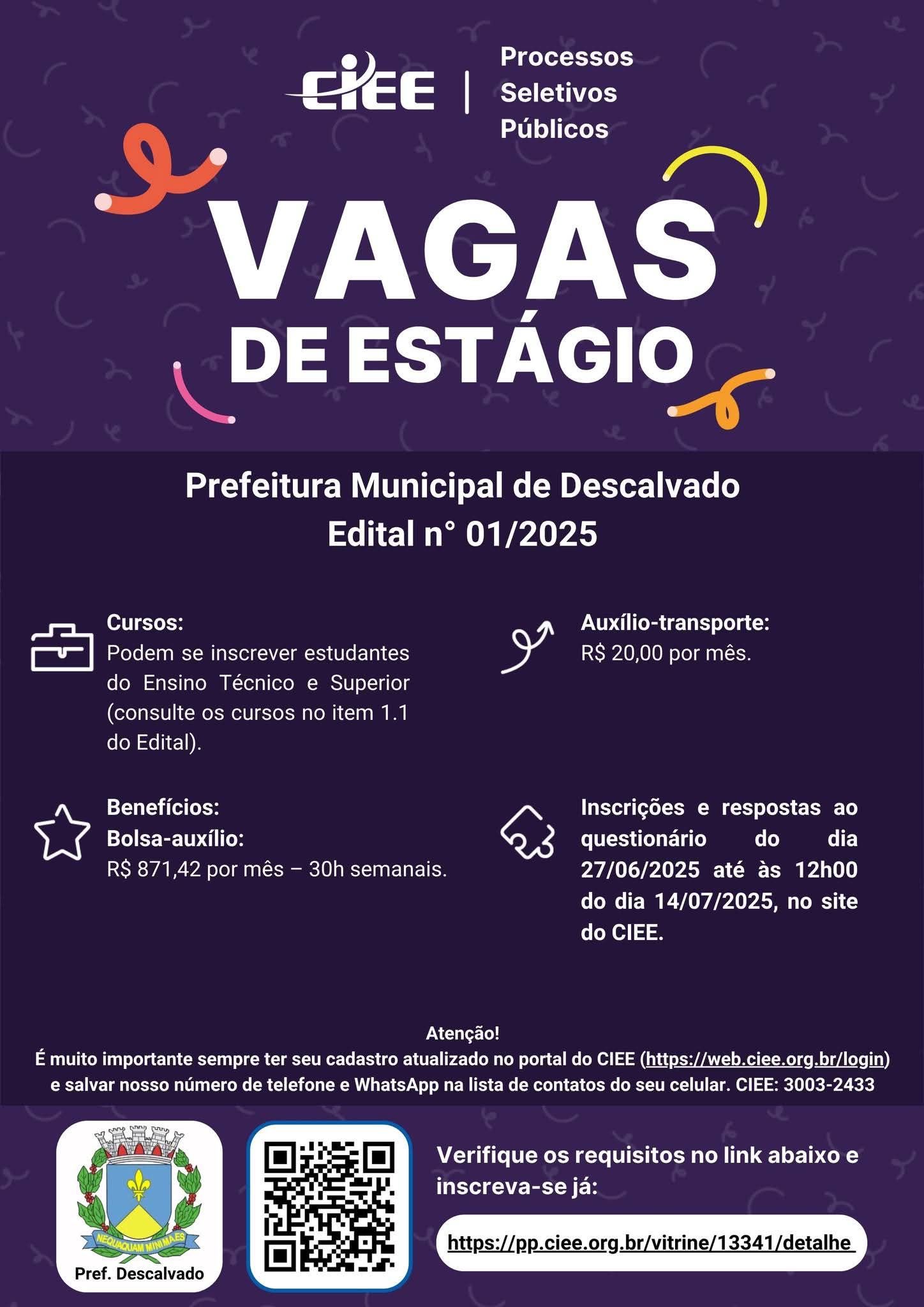 Atenção estudantes de Descalvado e região! A partir desta sexta-feira, 27 de junho, estão aberta...
