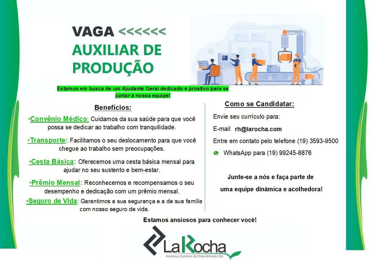 A empresa La Rocha, referência no setor de fibras minerais, está com uma nova oportunidade de em...